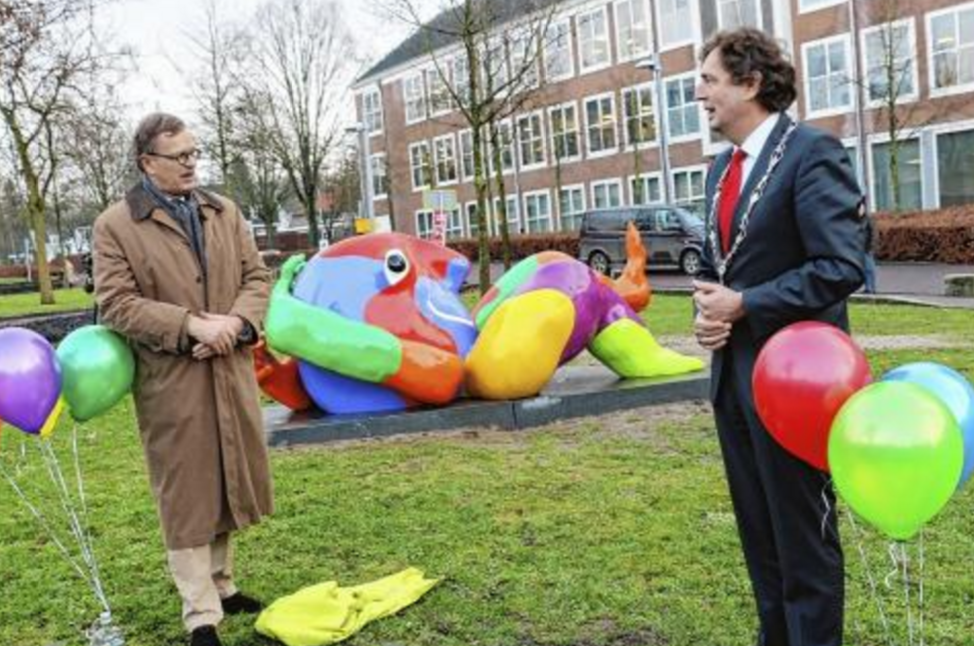 De hecho, el ayuntamiento ha recibido la escultura del Fondo de Cultura Harmsen van Ameshoff (HvA) Cultuurfonds en una ceremonia pública de inauguración tras la instalación de Tumbado.